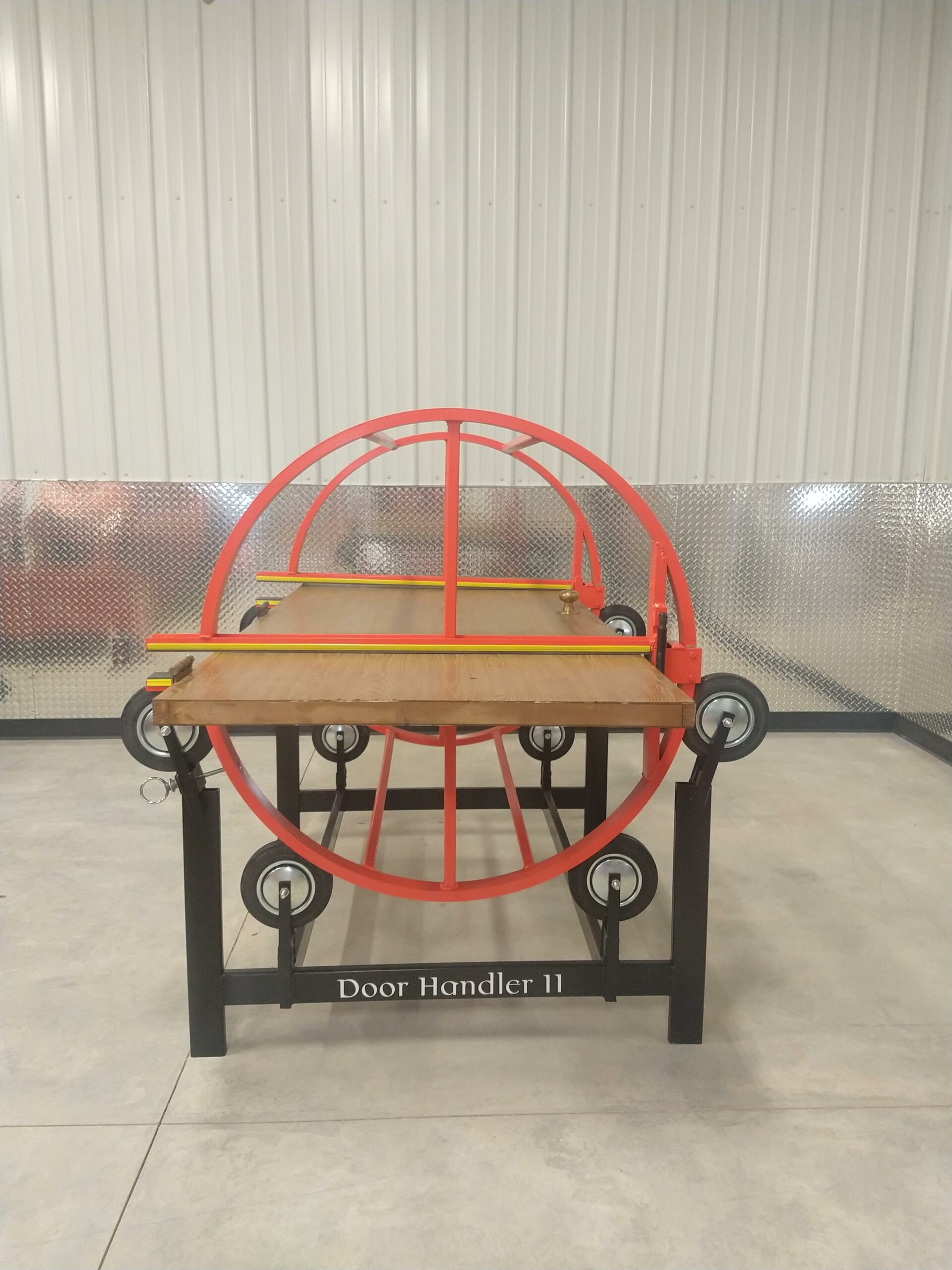 The equipment manufactured by Plains Specialty Equipment is a key component to the success of this methodology by virtue of it allowing handling of doors efficiently by persons of all statures without damage.